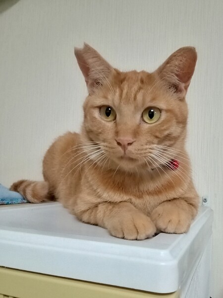 | 特徴(性格など) | 綺麗な茶トラの男の子です。 怖がりですが寂しがりやで野良さんとは 思えない甘えたさんです。 まとわりついて離れません。 今はだいぶ落ち着いて家猫とも 馴染んでます。 |