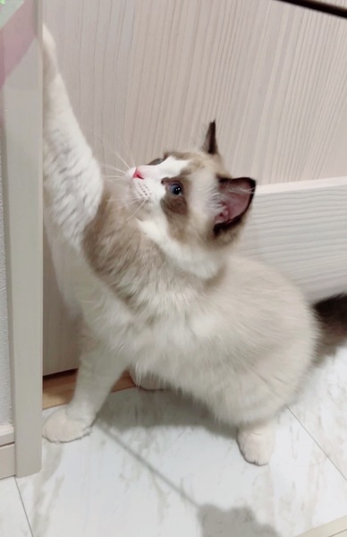 | 特徴(性格など) | シールポイントバイカラー (アライグマちゃんカラー) おっとり穏やかな性格です 抱っこされるのが好きなので抱っこして暴れたりしないで身を委ねてくれるような子です |