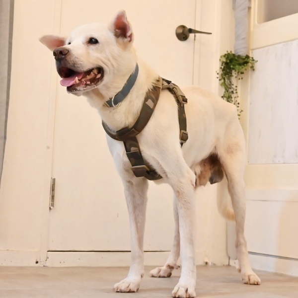 | 特徴(性格など) | 性格・特徴 【性格】 穏やかで落ち着いた性格の男の子です。 初対面の人には少し戸惑うこともありますが、慣れれば静かに寄り添ってくれます。他のわんことも仲良くできます。 過酷な環境を健気に生き抜いてきたもちくんを迎え入れてくださるご家族様を募集いたします。 【ご飯】 アレルギー用ドライフード210gを1日2回食べています。 フードは療法食が必要な場合以外は、シュプレモでお願いします。 【お散歩】 お散歩は大好きです。目を輝かせて笑顔で歩いてくれます。 迷子札は、首輪に刻印式のIDカラーで装着して頂く事と、ダブルフック型ショルダーリード使用のお約束をお願いします。 突然の物音に驚き、逃げてしまう可能性があります。 そのため必ず当会指定のネームカラー、ハーネス、ショルダーリード、すり抜け防止器具(すり抜け防止器具は当会よりお渡しします)を必ずご準備の上お散歩をして下さい。 当会では、全頭に脱走防止対策を行っており、トライアル中は当会よりお貸しいたしますが、トライアル中に必ずご準備いただくようお願い致します。お散歩も少しずつ慣れてきてますが、突然の物音に驚いて、首輪もしくはハーネスが抜けてしまう可能性があります。日頃のトレーニングと、ダブルリードの徹底を宜しくお願い致します。 お散歩等お出かけの際に、抱き上げるシチュエーションがあった場合は、リードや首輪やハーネスを一緒に握りしめたまま抱き上げて下さい。 車でのご移動は必ずクレートやケージに、入れていただくようお願い致します。 【トイレ】 トイレシートの認識はまだありません。 引き続き、トレーニングをお願いします。 トレーニングのご相談は承り、アドバイスさせていただきます。 【お留守番】 サークルでお留守番できます。 (ソフトサークルは禁止とさせていただきます) 健康状態 ※ 医療に関しまして、当会では、里親様にお繋ぎするまでに、検査や手術、治療等のレスキュー団体で出来る最大限の努力の上で譲渡活動を行っております。ご理解頂ける方のみご応募ください。 名前 もちくん 犬種 ミックス 年齢 14歳ぐらい(推定) 性別 男の子 体温 38.5度 体重 23㎏ 口腔 異常無し 皮膚 アトピーと思われる炎症と痒みがありましたが薬浴にて改善しています 耳 右耳の付け根に脂肪腫あり 心雑音 異常無し 検便検査 異常無し 血液検査 済み フィラリア 陰性 レントゲン 未去勢のため前立腺やや大きめですが、現在症状はなく様子見との診断でした 去勢手術 高齢のため麻酔のリスクを考慮し見合わせました ノミダニ予防 済み 虫下薬 投薬済み(2024.8.30) 混合ワクチン 高齢のため見合わせました 狂犬病予防注射 猶予証明書取得 畜犬登録 済み |