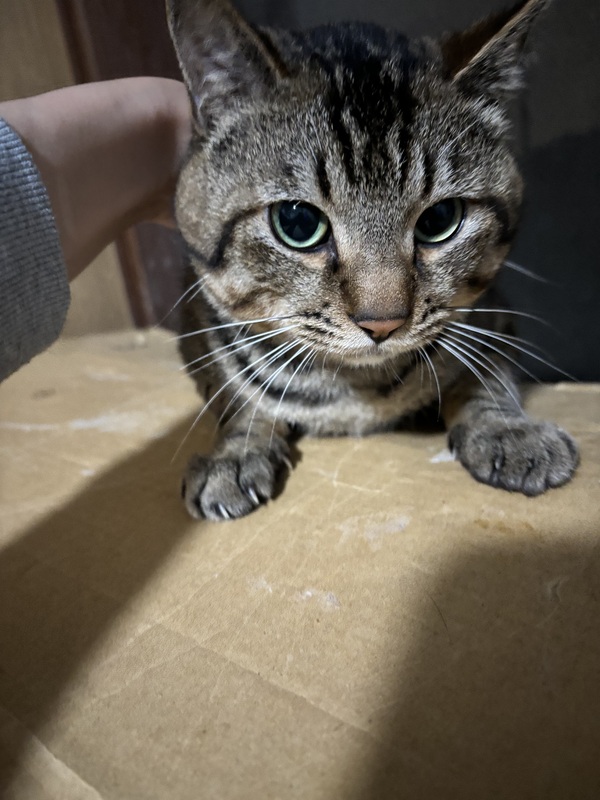 | 特徴(性格など) | キジトラ柄で人懐こい子です 親子です 母猫2歳 子供1最弱です |