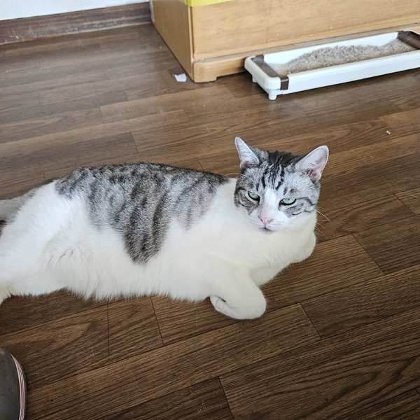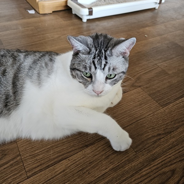 | 特徴(性格など) | 白とグレーのサバトラ ダッコが苦手な甘えん坊です |