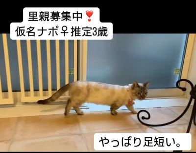 | 特徴(性格など) | ■特徴(仮の名前:ナポ) 成猫・シンガプーラmix♀白灰 推定3~4歳 体重3キロ ■性格・暮らし ・人慣らし中です。 ・おもちゃで遊ぶことは大好きですが触ろうとすると逃げます。 ・トイレで排泄できます。 ・ケージでお留守番、就寝できます。 ・他猫とは相性があります。 ※遊び方が激しく、他の猫を追いかけ回したりします。 ・足が短いですが活発に動いています。 ■実施済の医療処置 ・健康チェック ・4種混合ワクチン (2024/6/26) ・猫エイズ猫白血病検査(陰性) (2024/8/19) ・血液検査 (2024/7/8) ・避妊手術 (2024/7/22) ・駆虫薬投与 (2024/6/21) ・ブロードライン投与 (2024/7/8) ・マイクロチップ装着済み ■今後実施予定の医療処置 ・特になし |