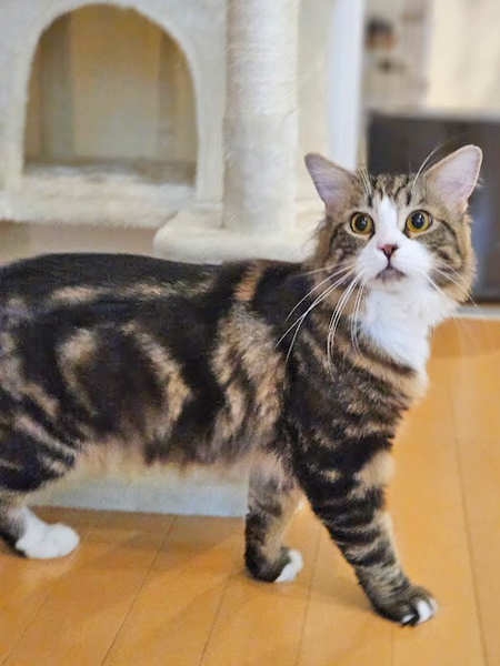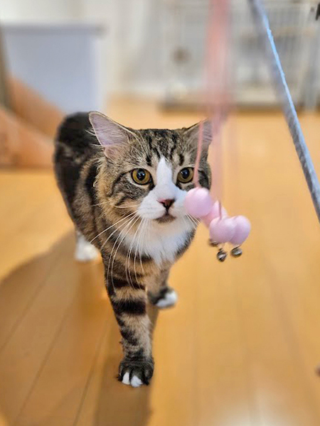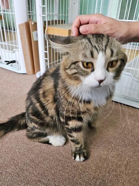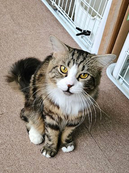 | 特徴(性格など) | ■特徴(仮の名前:にゃんこ大先生) 成猫・サイベリアンmix♂ブラウンタビー&ホワイト 推定2歳 体重5キロ ■性格・暮らし ・人馴れしています。 ・おもちゃ遊びが好きです。 ・トイレで排泄できます。 ・他猫とは相性があります。 ※若干ジャイアン気質です。 ・ケージでお留守番、就寝できます。 ■実施済の医療処置 ・健康チェック ・4種混合ワクチン (2024/6/26) ・猫エイズ猫白血病検査(陰性) (2024/8/19) ・血液検査 (2024/7/8) ・去勢手術 (2024/7/11) ・駆虫薬投与 (2024/6/21) ・ブロードライン投与 (2024/7/8) ・マイクロチップ装着済み ■今後実施予定の医療処置 ・特になし |