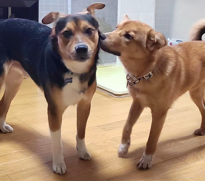 | 特徴(性格など) | 食べる事が大好きな食いしん坊さんで元気いっぱいの男の子です。 初めての人は苦手ですが、慣れれば一緒におもちゃ等で遊んでくれます! 他犬も大好きで、他の子達とワンプロしたり追いかけっこしたり楽しそうに遊んでいますが、ひとりぼっちになると寂しがる傾向があります。 お外も、お庭遊びは好きになってきましたが、音や人には敏感です。 ハーネスを付けてのお散歩は練習中です。 〈健康状態〉 体重16kg トイレシート認識済み ワクチン接種済み マイクロチップ装着予定 未去勢(年内予定) |