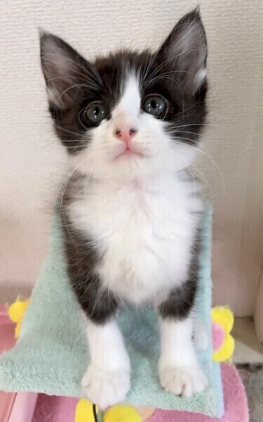 | 特徴(性格など) | 【仮名】こはなちゃん 【性格】ちょいパヤハチワレのこはなちゃん♪ まるでヌイグルミのようなコです♪ ミルクから乳母プロ預かりさんが 愛情たっぷりに育て上げてくれたので 当然のように人馴れバッチリです! 3度のメシより遊ぶの大好き(笑) おもちゃ遊びは兄妹を押しのけて 走り回るパワフルにゃんこです♪ でもちゃっかりおヒザをキープする アザとさも兼ね備えてます(笑) よく食べよく遊びよく寝て スクスク成長中の元気印にゃんこです♪ まだまだチビッコなので お留守番は少なめの方限定です! ぜひ兄妹のこはくくんやこまちちゃんと 一緒のお迎えをお願い致します♪ ※1ピキ譲渡不可 |