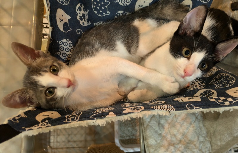 | 特徴(性格など) | キジシロとシロクロの兄弟です 甘えんぼさんで 遊んでほしくてゲージから手をのばしてきます 沢山の保護猫がいるため なかなか遊んであげる事ができず 1日も早く里親さまの元 幸せにと願います 仲良しなので兄弟一緒のお迎えですと 大変嬉しいです ノミ・ダニ駆除済 エイズ白血病陰性 ワクチン接種1回済 検便済 |