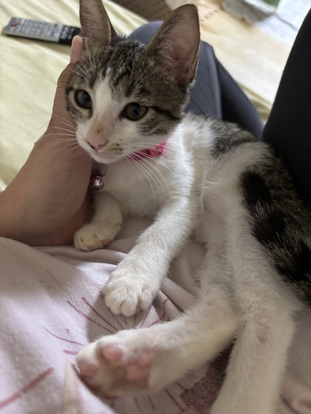| 特徴(性格など) | 色柄:サバトラ 性格:子猫らしい子猫。 とてもおてんばで、よく遊んで、よく食べて、よく寝てを繰り返してます笑 人馴れは抜群です!私がソファやベッドにいると、必ず膝の上に乗ってきます。 ミーミー鳴きながらなでなでを求めて来ます。 成猫の初対面の威嚇にも動じず、初めての場所にも物怖じしない度胸のある子です。 |
