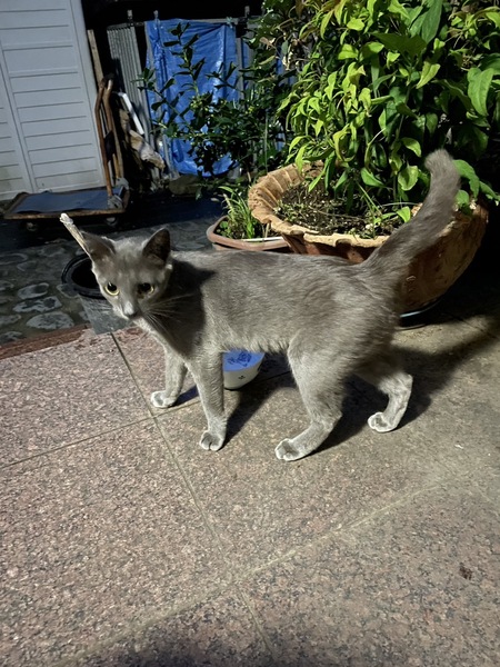 | 特徴(性格など) | 綺麗なグレーの子です しっぽは『幸せのかぎしっぽ』です 性格は元完全地域猫の割に温厚で人馴れは早いと思います。 トイレも覚えています 食欲旺盛でよく食べます なんでも食べます |