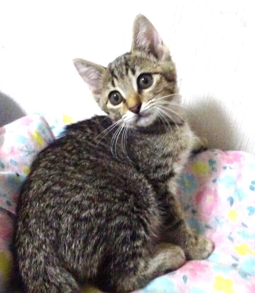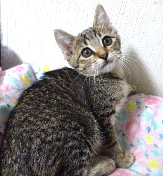 | 特徴(性格など) | 仮名: 野々花ちゃん、メス 毛色: キジトラ 性格: 保護時は威嚇していましたから、ビビりと思います。 今も4兄妹の中では一番のビビりで、大人しい方です。 攻撃性はなく、触ったり抱っこしたり出来ますが、まだ自分から甘えたりが出来ないようです。 じゃらしで遊ばせていても、他の子の影からそっと手を出したりします。 興味はあるけど、思いっきり前に出て遊ぶよりも慎重に様子をみているようです。 兄弟と一緒(涼花、花音)のご縁があると良いですが、別々でも構いません。 野々花ちゃんのペースでゆっくりと馴らしてくださるご家庭を希望します。 お届けは千葉県内で車で1時間位が希望です。 検便済 駆虫済 3種混合ワクチン済 猫エイズ・白血病ウィルス検査は共に陰性です |