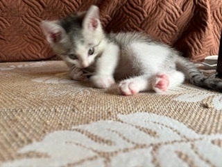 | 特徴(性格など) | <初期医療> エイズウイルス検査:陰性 白血病ウイルス検査:陰性 ワクチン接種:済み ノミ・ダニ駆除薬:済み 糞便検査:済み 可愛いグレー白の子猫の男の子です。よく食べて、よく遊んで、とても元気です。尻尾が長尻尾です。珍しい色合いでルックスも性格もとても可愛いです。もうすぐ2ヶ月になりますが、小さな子猫なのでお留守番のないご家族様や7兄弟で保護しましたので仲良しの兄弟(妹)と2匹一緒に迎えてくださるご家族様を希望します。 |