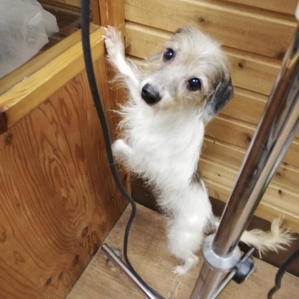 | 特徴(性格など) | ジャックラッセルテリアメインのMIXで、とにかく可愛いお顔と性格のしめじ君です。 持ち前の明るさと愛嬌たっぷりの甘えん坊の性格が楽しい男の子。 多頭崩壊の孤立した現場にいたからかまだ社会性が育っておらず、子犬のような行動をし非常に無邪気です。 きゅるきゅるのお目目にとってもスタイルが良い体型、体の模様もすごく可愛いですよ。 ジャックが多めだからか運動神経も抜群で、お散歩はしっかり最低朝夜30分ずつ必要となります。 経験がないにも関わらず、お散歩もボール遊びも少しの学習ですぐにできるようになる非常に頭のいい子です。 善悪をしっかりと教えられる、しつけをちゃんとできる方向けのわんちゃんです。 とても甘えん坊な性格で、かまってちゃんです。 保護したての時は少し分離不安のけがあり、今は少しずつ改善してきています。 が、まだ保護主に依存気味であり、どこでもついてまわりたがります。 クレートやゲージには強い抵抗があるため中に入れ続けておくことは難しいです。 が、お留守番はフリーちゃんとできて、いたずらもせず大人しくできます。 トイレは8割成功で、なかなか優秀です。 今まで愛に飢えてきたからか、沢山の愛と注目を集めたがるしめじ君。 他の動物との多頭飼いではなく、しめじ君だけに愛を注いでくれるご家族を探しています。 まだまだ子犬のような性格で甘えん坊ですので、お留守番は少なめのお家が好ましいです。 お子様は小学生高学年以上のご家庭が良いかと思います。 過去にトラウマがあるのか、男性には強い恐怖心があります。 特定の相手にでしたら時間とトレーニングで慣れていくと思います。 生まれてからずっと多頭崩壊の現場で放置されていたしめじ。 しめじが安心して沢山甘えられる、素敵なお家を探しています! |