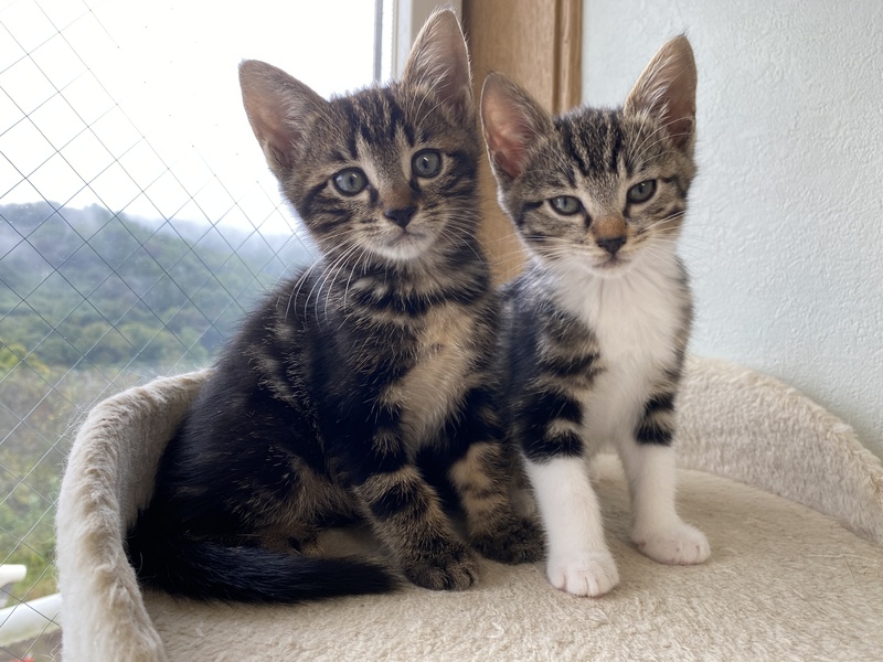 | 特徴(性格など) | <仮名:らん(女の子)> キジシロで前足は白靴下をはいているようです。尻尾はすらりとまっすぐです。 賢く、物怖じしない性格で、すぐに場所にも人にも慣れました。 撫でられるのが大好きで、すぐにゴロゴロ喉をならして甘えるかわいい子です。 <仮名:はろ(男の子)> キジトラで、尻尾はすらりとまっすぐです。 慎重派で少し臆病なところもありますが、慣れるとゴロゴロ盛大に甘えます。 らんの後をついてまわり、行動を真似するかわいい弟くんです。 はろが少し臆病な為、らんと2匹一緒の縁組を希望します。 2匹とも保護時の状態もよく、健康でよく食べよく遊びよく眠る子猫らしい子猫たちです。 ★体重:らん0.79キロ、はろ0.78キロ(2024年11月4日時点) ★駆虫済 ★ウイルス検査済(エイズ、白血病ともに陰性) ★3種混合ワクチン 接種予定 |