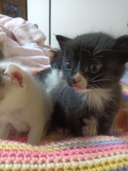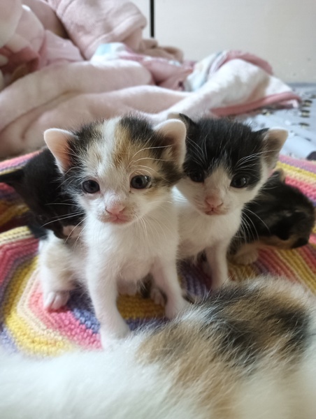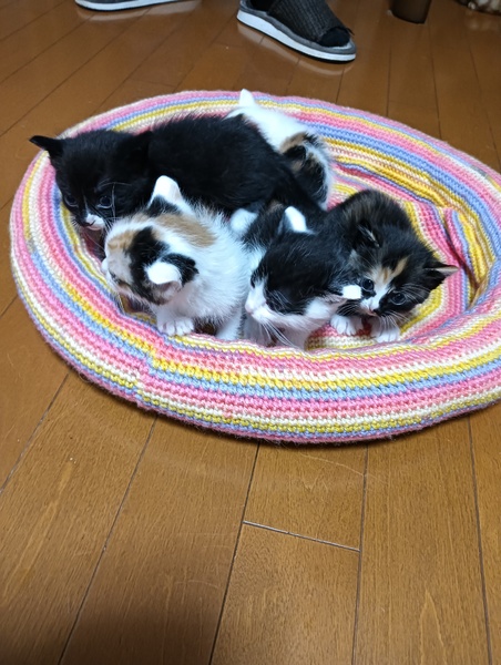 | 里親募集する理由 | シロマル母さんの子供達を里親さんに渡してしまった後、シロマルのメンタルがとてもおかしくなり、避妊手術を遅らせていた時に、私の仕事中にドアを開けて仲良くなって妊娠してしまい、出産させました。想定外ですが、とても可愛いです。私もよし頑張るよ。と言い聞かせています。 | ||