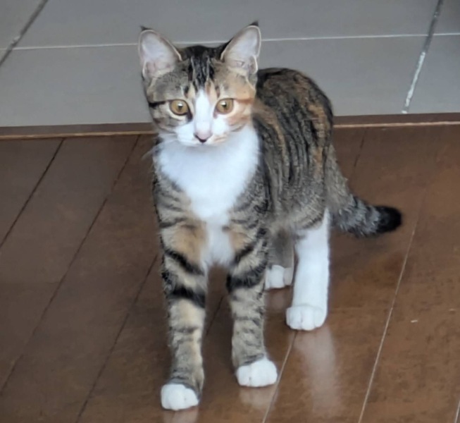 | 特徴(性格など) | 丸顔のミケちゃんです。 おもちゃで遊ぶの大好き❤️ 食いしん坊でおてんばな女の子。 血液検査陰性です。 兄キジトラ猫と仲良し、兄妹で新しい家族を待っています。 |