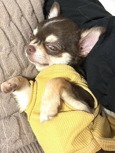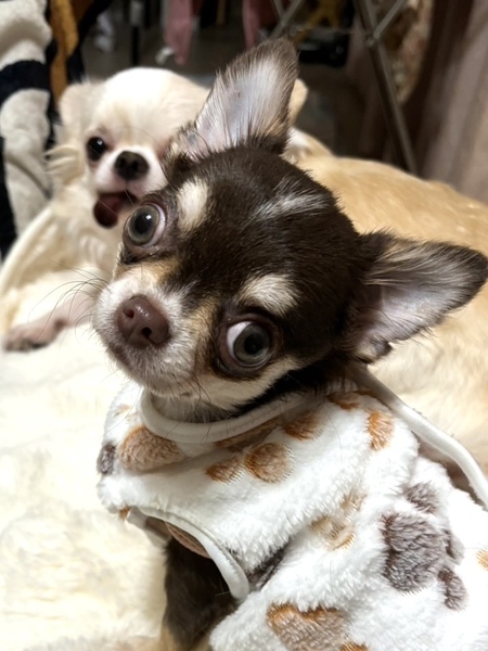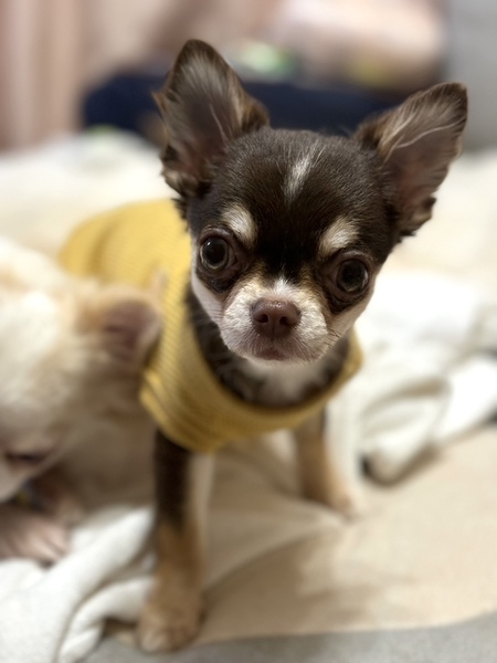 | 特徴(性格など) | 性別: メス 犬種: チワワ 毛色:チョコレート&タン 年齢: 2024年6月11日生まれ 体重: 1.54kg 性格:元気で活発。人にも犬にもフレンドリーですが気が強い一面もあります。食欲旺盛です。 トイレ: シート認識無し。 散歩: 大好きで長距離でもよく歩きます。 日常の様子:留守番と就寝はゲージで、それ以外はフリーで過ごしています。活発によく遊び、他犬とはかなり激しい遊びにもなります。人には甘えたがります。 お手入れ:毎月のトリミング・毎日のブラッシング・歯磨き・耳掃除・涙やけケアなど ※トリミング犬種ではないので、短く刈り上げる等のことはしないで整えてあげてください フード: アカナパピーとよしおかフード 健康状態 フィラリア: ワクチン:5種混合ワクチン接種済み マイクロチップ: 避妊・去勢:未避妊。譲渡後適切な時期に避妊手術をし、当団体担当者へ手術済みの報告を必ず入れてください。 その他:触診・聴診・血液検査・検便、異常なし、駆虫薬投与・ノミダニ駆除済み ★特記所見:水頭症 |