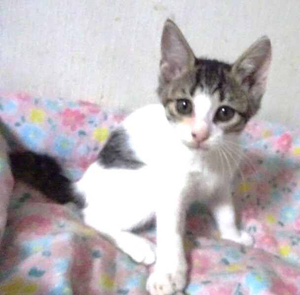 | 特徴(性格など) | 仮名; 花音ちゃん、メス 毛色: 白っぽいキジ白 性格: 保護時から威嚇することなく、すぐに人に馴れました。 兄弟の中では一番人馴れしていました。威嚇なく攻撃性もなく、抱っこ出来爪切りも出来ます。 抱っこすると甘えん坊ですが、遊び盛りなので、じっとしていなくてすぐに遊びに行きたがります。 月齢からすると小柄ですが母親も兄妹も小柄です。 なるべく留守番時間の短めのご家庭で、甘えん坊の相手をして頂きたいです。 大人猫との接触がなく、うまく付き合えるかわかっていませんが、優しい先住猫ちゃんなら大丈夫と思います。 お届けは、千葉県内で車で1時間位を希望します。 検便済 駆虫済 3種混合ワクチン済 猫エイズ・白血病ウィルス検査はともに陰性です。 |