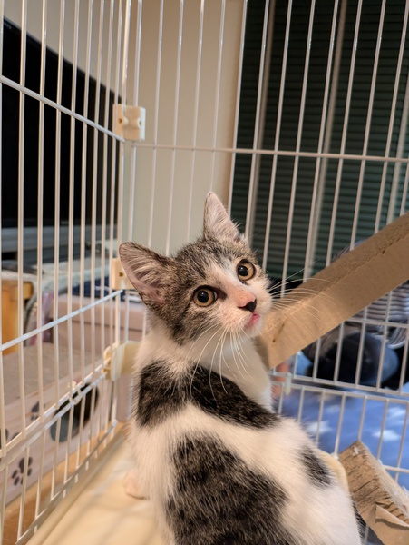 | 特徴(性格など) | 甘えんぼの元気なキジシロの男の子です 耳から長い毛が生えていますので 体の毛ももう少し長くなるかもしれません 1人遊びも見ていて笑えて可愛いです |