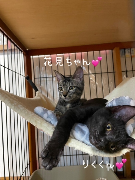 | 特徴(性格など) | ■黒猫りくくんは男の子、キジトラ花見ちゃんは女の子 多少人見知りはありますが、とっても甘えん坊で可愛い子たちです! 現在やんちゃざかり。 |