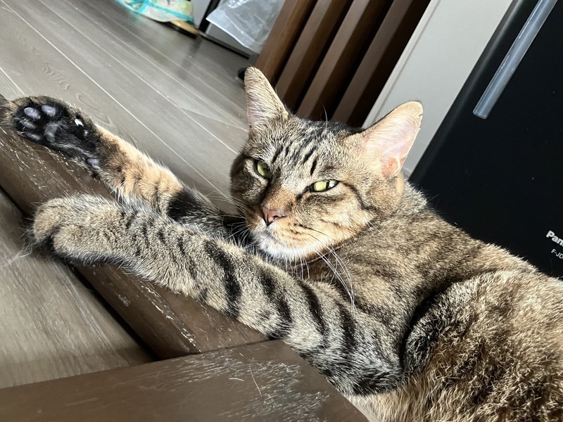 | 特徴(性格など) | キジトラ猫 への字が可愛い 目も特徴的 猫に優しい 温厚 人は苦手 ドライフードが好き たまにテンションあがるのかなく。 少しアレルギーがある 腸の手術をしました 腸疾患あります 投薬継続により寛解する場合もある |
