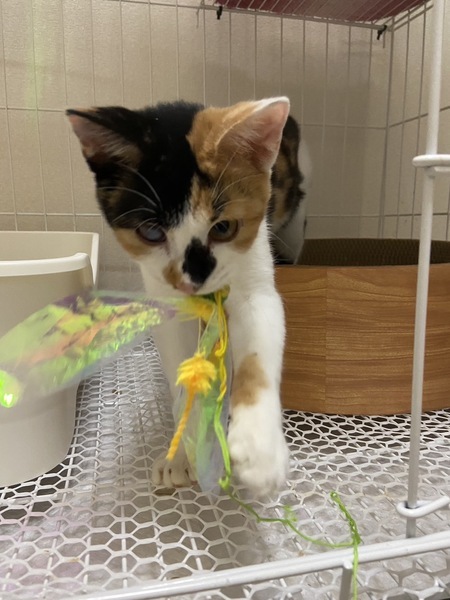 | 特徴(性格など) | 猫白血病・猫エイズ:陰性 3種混合ワクチン接種済み 駆虫済み 避妊手術済み(小さく耳カット有) ※補助金申請はしていません 右目:白濁有(目薬で治療中です。目は見えています) 体重:11月中旬現在 2.4kg |