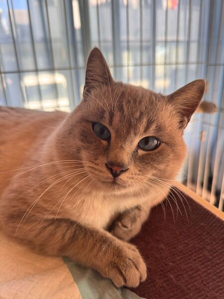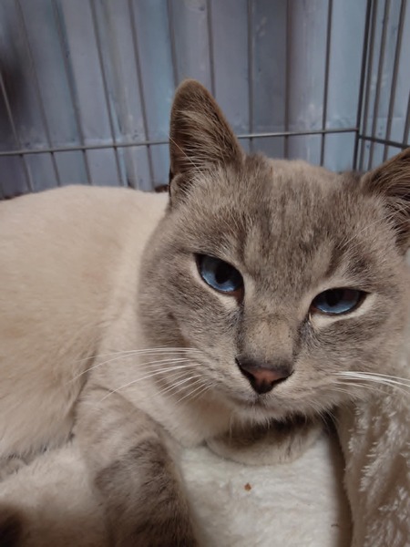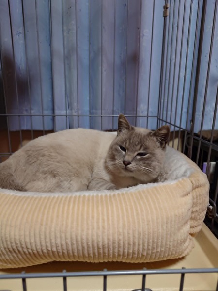 | 特徴(性格など) | 少しクリーム色の短毛で、お顔はシャム系です。 ブルーの瞳はきれいです 性格は、少しビビりですが、慣れると超甘えん坊です。 ご飯を食べるよりも撫でて撫でてとすり寄ってきます。 人と触れ合うことが大好きなようで、お腹も撫でられるのが好きです。 お腹をなでるとすごく喜んで、ゴロゴロ言いながら、ずっと転がっています。 ケージ内設置の猫砂トイレも上手に使用できます。 |