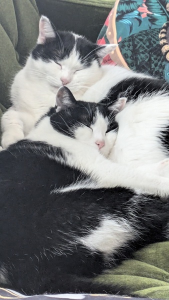 | 特徴(性格など) | 白黒のハチワレです。 オス猫は甘えん坊で活発、人懐っこく抱っこされたり、膝の上に乗ってきて撫でられたりするのが大好きです。爪切りも難なくできて賢いです。 メス猫はオス猫に比べると少し警戒心が強いですが、レーザーのおもちゃや猫じゃらしなどで遊んであげると無邪気に追いかける姿がかわいいです。抱っこと爪切りは苦手ですが、膝の上に乗ってきてゴロゴロいうくらいの人馴れはしています。 夜、寝るときはケージに入る習慣があるので、マンションで飼う方には下の階の方への配慮ができるかと思います。 トイレも決まった場所でするようにしつけてあるので今まで失敗したことはないです。 避妊去勢手術済み、持病などもなく健康です。 |