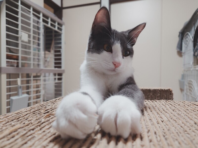 | 特徴(性格など) | 2024.6.30生まれ(推定) 毛色:白グレー ピンクのお鼻がかわいい・ほへと。 しっぽはグネグネしまくりです笑 人にも猫にもフレンドリー。とっても甘えん坊さんです。 子猫らしい高めの鳴き声でかわいくアピールしてくれます♪ お膝に乗るのが大好きで、座ったら即お膝にピットイン!! 遊ぶのも大好きな、食いしんボーイです。 |