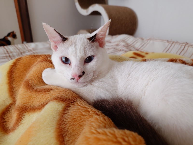 | 特徴(性格など) | 2024.6.30生まれ(推定) 毛色:シャム系 ブルーの瞳が美しい・ちり。 しっぽは真っすぐに見えますが触るとグネグネと細かく波打っています。 ヤンチャで遊ぶの大好きな男の子ですが、マイペースに過ごしています。 ちょっぴり怖がりさんなので、慣れるまで抱っこはおててに力を入れて拒否ってきますが、慣れたら甘えん坊に変身です♪ |