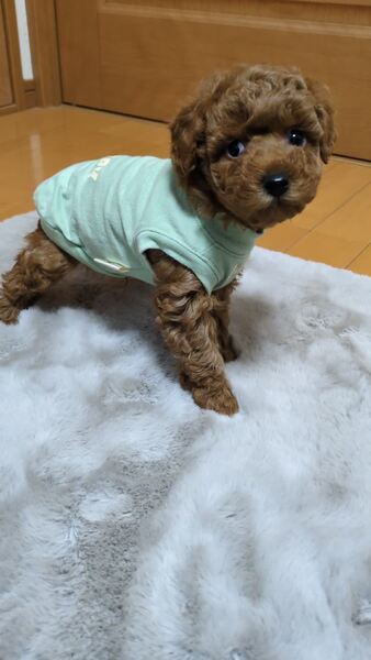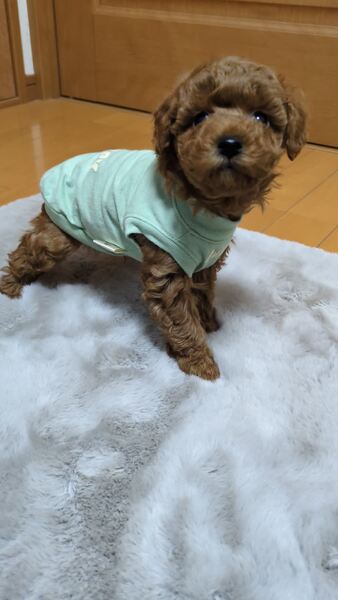 | 特徴(性格など) | レッド 胸の辺りに白色あります。性格は陽気で呼ぶと走っしてきます。 目が不自由ですが、トイレや、ご飯の場所もわかり他の子犬とあまりかわりません。上を向いて歩くので、もしかすると眼球下部分は、見えているかも。 獣医師の診断は、眼球内の神経の変形との事です。 治療方法はありませんが、悪くなる事も無いです。 |