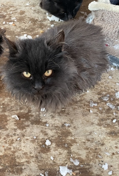 | 特徴(性格など) | 黒長毛ちゃんです。 牧場の牛舎内で生まれたのでずっと外猫ですが、人慣れしており触らせてくれます。 抱っこもさせてくれます。 |