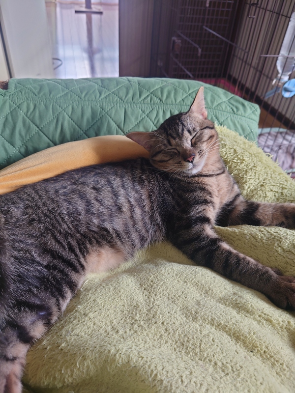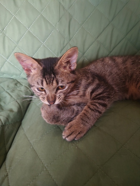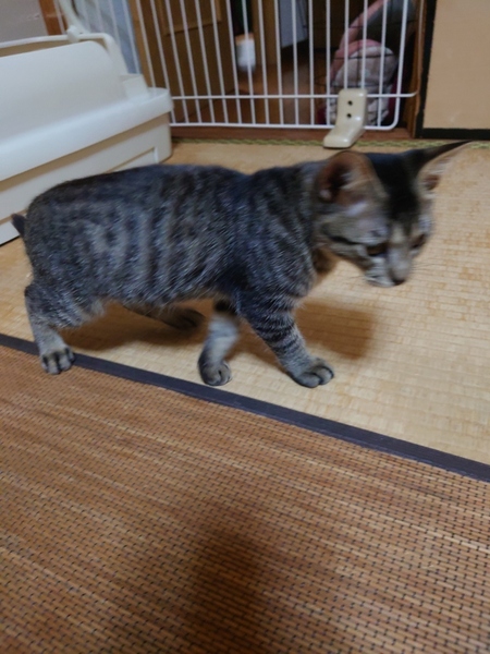 | 特徴(性格など) | キジ子猫です。 元気で甘えん坊です。一人遊びも得意です。 膝に乗って指を舐めたり甘噛したりします。 |