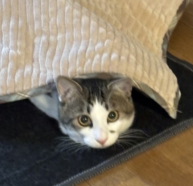 | 里親募集する理由 | 隣接市のTNRの現場に、お母さん猫が連れて来ていた子猫ちゃんで、お母さん猫は捕獲して避妊手術を行ってリリースしましたが、この子達はまだ手術の出来ない月齢(生後2ヶ月半位だった)で、その当時は栄養状態もあまり良くなかったため、保護して里親探しをすることになりました。 人馴れ修行に思いのほか時間がかかって里親探しを始めるのが遅くなったので、去勢手術を済ませてからの里親募集になったという経緯です。 |