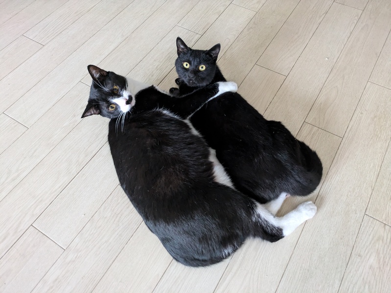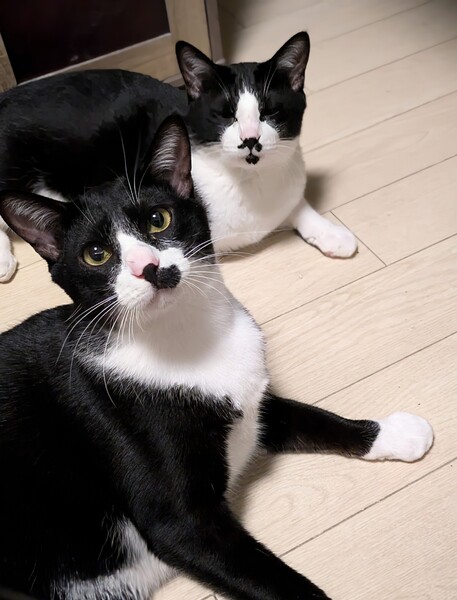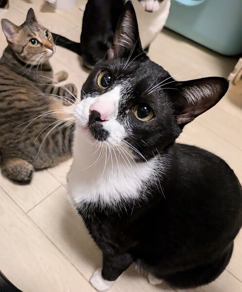| 特徴(性格など) | ハチワレで片方だけお鬚があります。 性格はとにかく明るく元気いっぱい好奇心旺盛。毎日楽しいぞ~っていう声が聞こえてきそうなぐらい猫生謳歌してます(笑) 毛艶がかなり良く、黒光りしてます。 物怖じしない性格で、最初からいたかのような存在感で先住犬、先住猫の先頭に立ってます。人馴れしてない子や、新しく入った子の面倒をよく見てくれて、人馴れしてない子はドリーのお陰で人馴れしてくれるので貴重な存在です。 この子を見ているとどんなに嫌なことがあっても元気になります。 不思議な子です(笑) |