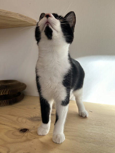 | 特徴(性格など) | とにかくやんちゃで元気いっぱいな男の子です! おもちゃ遊びも他の猫と遊ぶのも大好き。 とっても甘えん坊で人にも猫にもゴロゴロです。 他の猫ににゃんプロしてる姿をたびたび見かけます(笑) 綺麗なハチワレ模様です。 |