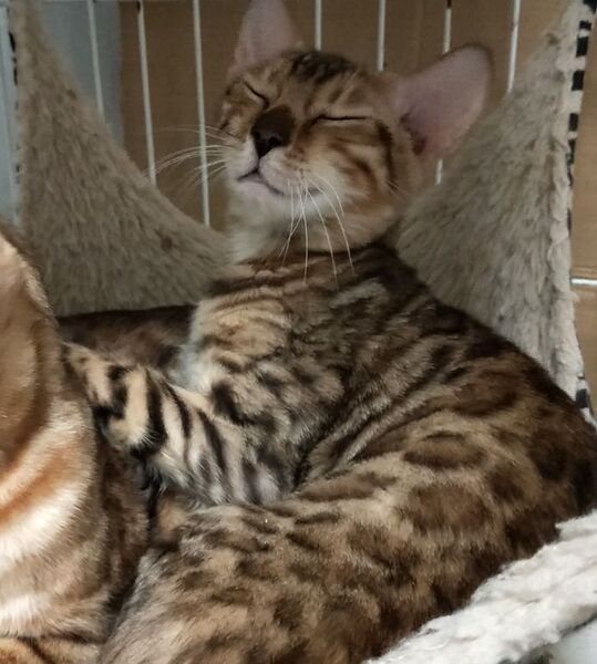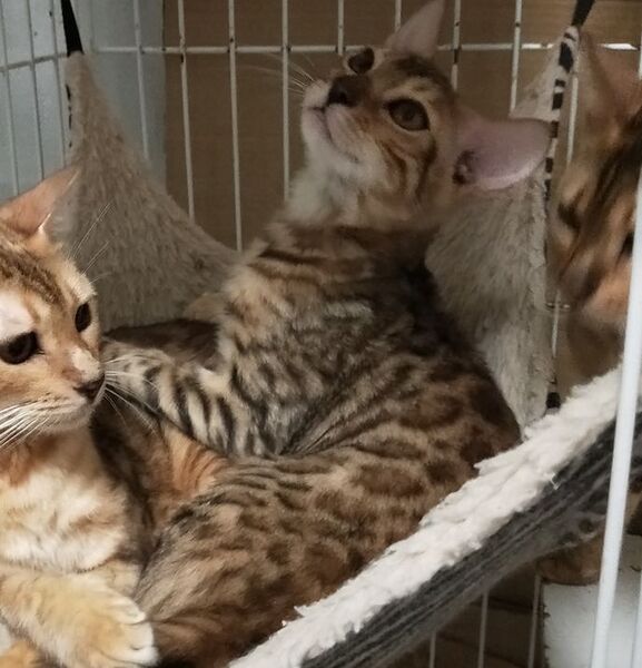 | 里親募集する理由 | 9月に生まれた3匹の子猫から、1匹譲渡することにしました。 両親ネコは去勢、避妊済み。 血統書はお渡しできませんが、家系はTICAのグランドチャンピオンやチヤンピオンがいるので、クォリティは良いほうだと思います。 大事に飼って、近況報告をしていただけり方に譲渡いたします。 |
