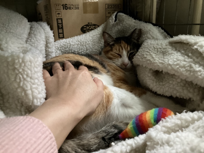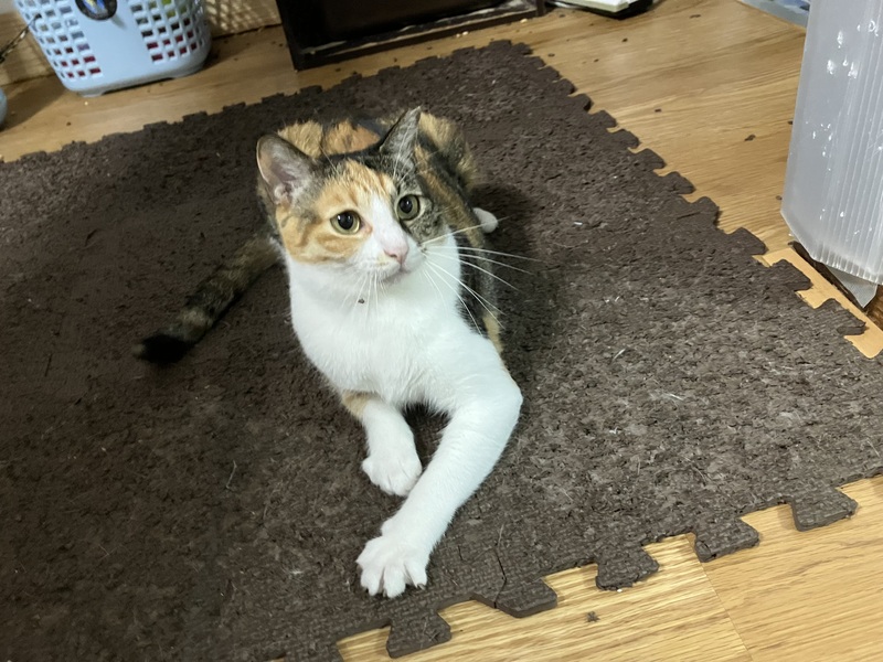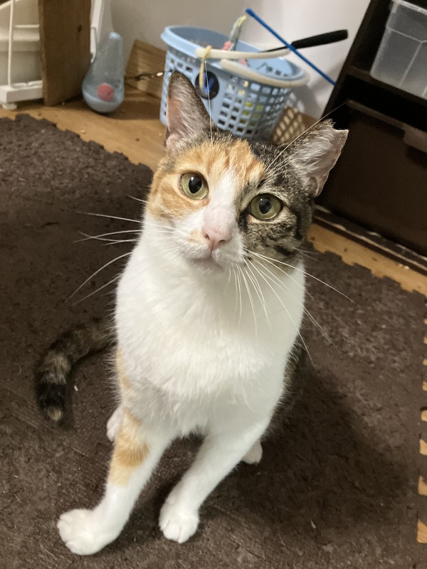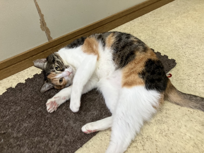 | 特徴(性格など) | まみーは三毛猫の女の子、年齢は3歳半前後かなと思われます。 まみーは基本マイペースでのほほ〜んとしていて、のんびりと気ままに過ごしております。とっても人懐っこく、初めての人と会ってもほとんど警戒しなくなってきています。人に対して安心安全と思えているのだろうなと思います。 ご飯が欲しい時にとっても可愛い甘えた声で鳴いてくるのが、きゃ〜ってなって心を鷲掴みされちゃいます。 病院に行く時とかも怖くて不安なようで、どこからそんな声出るの?そんな一面もあるの?って感じで、またとっても可愛い声で鳴くので、思わず可愛すぎるってキュンっとなっちゃいます。 遊ぶのも大好きで、おもちゃにすぐ反応してくれて、嬉しそうに楽しそうに遊んでるところもとっても可愛いんです。 床のクッションマットに寝転ぶのも好きで、そこにごろ〜んとしていたり、重なったクッションマットの中に潜ったり、クッションマット自体で遊んだりと大好きなのが伝わってきます。 日中は人が見える位置にいつもいて、たまに自ら近くにナデナデされに近寄ってきたりして、目を細めて「眠たいんだにゃ〜」って柔らかな表情をしてまったりしてるところもまた可愛くて、とってもほっこりとした気持ちにさせてくれます。 食事は以前はゆっくり食べる方で、一度にたくさん食べると吐き戻してしまう為、本人も合間を開けて食べたりしていましたが、最近は食い付きも良くなり、ペロリと最後まで全部食べらようになりました。 ナデナデも大好きで、目を細めてほんとに気持ちよさそうな柔らかな表情をして、気持ちいいんだろうなぁってのがとても伝わってきます。 私が別の場所にいると、近くに寄ってきてスリスリしてきたり、甘えた声で鳴いてきたり、甘えん坊で無邪気でまみーのとっても可愛い鳴き声に是非癒されてみてください。 そして、まみーちゃんはエイズキャリアでもあります。エイズを発症してるわけではないですが、ウィルスを持ってますよという事です。ですが、エイズは感染率も極めて低いウィルスで、ウイルスを持っているすべての猫が発症するわけではなく、キャリアであっても室内で穏やかにのびのび過ごさせてあげる事で、ずっと発症せずに、そのまま天寿を全うする猫ちゃんの方がほとんどなんだそうです。 エイズとは関係なく全く別の病気で亡くなる子の方が多く、陽性・陰性で平均寿命に差がないとの統計も出ているそうです。 エイズキャリアが気になる方は、1匹飼いや同じ陽性の子と飼うか、部屋を別にする等をご検討してみていただいてはいかがでしょうか。 エイズキャリアだから素敵な家族に巡り逢えないなんて、とっても悲しい事です。エイズキャリアでも関係なく、ご理解のある心温かく、心優しい素敵なご家族様に出会えることをまみーちゃんと心より願い、お待ちしております。 まみーちゃんが安心していつでも家族に甘えられてたっぷり可愛がってくれる、のんびり楽しく幸せに暮らせる優しい素敵なご家族さんに出会えたらいいなと心から願っております。 そして、きっとまみーちゃんが貴方様の癒しになってくれると思います。 どうぞ、まみーちゃんを宜しくお願い致します。 ノミダニ虫下し済、さくら耳カット有り、猫エイズキャリア+、猫白血病- |