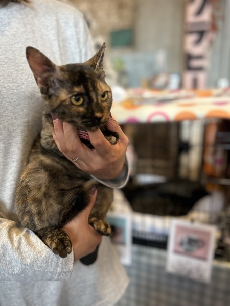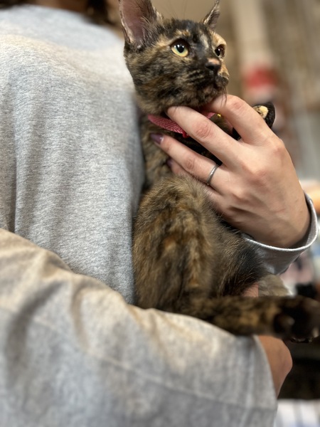 | 特徴(性格など) | ✳︎特徴 とても綺麗なサビ猫ちゃんです。サビさんは写真映えする写真が撮りにくいカメラマン泣かせなのですが、ベリーちゃん(仮名)は、黒と茶の模様のバランスなのか、元々美人で映えるのか、どの写真もかわいいです。女の子のせいか身体は全体的に小柄です。 ✳︎性格 預かりさん曰く、ベリーちゃん(仮名)はツンデレ女子の頂点にいるんじゃないかっていうくらい、甘えてくる時とそうじゃない時の差が大きいそうです笑←それがまた愛おしい! 抱っこはあまり好きじゃないそうですが、お写真は抱っこされているものが多いうえに、リラックスした表情をしているので、それなりに飼い主さんに付き合ってくれるオトナ女子なんじゃないのかな...?と思っています。 ✳︎健康状態 現在は良好です。小柄ですが食欲旺盛です。耳カットがあります。 すでに7ヶ月の月齢なので、おひとり様の方がいいのかも...と思います。後から子猫さんをお迎えするのはいいと思いますが、先住猫さんがいるお宅からのご応募の方は、猫さんの飼育経験が長くて色々慣れていらっしゃるご家族がありがたいです。 子猫さんではないので、お留守番もできますが、今までずっとたくさんの猫さんやご家族と一緒に過ごしていたので、一人でのお留守番経験がありません。長時間のお留守番はベリーちゃんが不安定にならないよう、少しずつ慣らしていってもらえると嬉しいです。 |