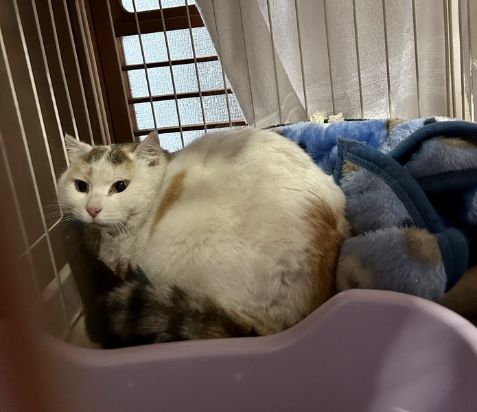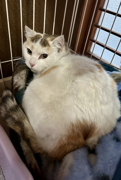 | 特徴(性格など) | 白地が多い三毛猫さんです ころっとしたまるまるな可愛いフォルムです 女子ですがにゃんこ大先生の実写版のような感じです とても優しい穏やかな子です |