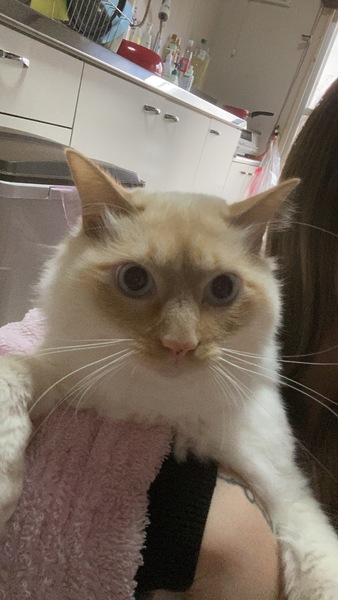 | 特徴(性格など) | 白いふわっとした毛並みで 鍵しっぽです。 とても、人懐っこくスリスリ近寄ってきます。 抱っこは緊張してしまうので膝に載せるとグルグルと喉を鳴らします。 食欲もあり、健康です。 |