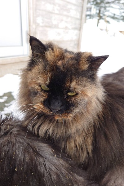 | 特徴(性格など) | サビ柄の女の子です。 牧場の牛舎内で生まれたのでずっと外猫ですが、人慣れしており触らせてくれます。 猫らしい気まぐれなところがあります。 (現在はお耳がさくら猫になっています。) |