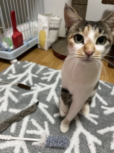 | 特徴(性格など) | 銀杏の葉模様が可愛いので、このはちゃんと呼んでいます。臆病な所はありますが、とても優しく穏やかな性格の子で、保護してから1度もパンチありません。慣れてからは猫じゃらしで遊ぶのが大好きで甘えてくれるようになってきました ご飯もいつも完食、トイレも完璧です。とても飼いやすい子だと思います。 | ||