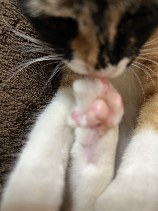 | 特徴(性格など) | 人にも先住猫にもベッタリの甘えちゃんです(*ˊ˘ˋ*)。♪:*°ちょっと大人しい子ですが、座っていると膝に乗ってスヤスヤ寝てくれます。 先住猫とも仲良しで、一緒に眠ったり毛繕いしたりとってもラブラブ♡どんな猫ちゃんにでも怖がらすスリスリするので、先住猫がいる方にもおすすめです(*ΦωΦ) チョビちゃんは右足の指が3本しかありません。左足の爪が一本抜けています。でもとても元気で、毎日走り回っており、日常には全く問題はありません。個性として可愛がってもらえる方、是非よろしくお願いします! |