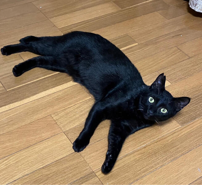 | 特徴(性格など) | 吾輩(わがはい)は猫である。 名前は一応ある。 ダンと呼ばれている。 どこで生まれたかと見当がつかぬ。何でも川沿いの薄暗いじめじめした所でニャーニャー泣いていたのは記憶している。 吾輩はここで始めて人間というものを見た。 生きる事に必死だった吾輩は、この人間とやらにご飯を貰って生き抜いていた。 とにかく生きる為に必死だった。 吾輩は元野良猫である。。。 飼い主にしか心を開かないサムライみたいな猫です。 ~~~~~~~~~~~~~~~~~ 【性格】まだ生後約10ヶ月の大きめの子猫で黒猫のオスくんです。 警戒心が強く慎重派です。要は、ビビリです。 最初だけ、元野良猫らしく、シャー!とかウー!とか一丁前にします。 しかし、絶対に飼い主に手を出す事はありませんのでご安心ください。 基本、心の優しいヘタレボーイなのですから(笑) 元々、保護した時から空いばりしていて、めちゃくちゃかわいかった子でした! 『百聞は一見にしかず』なので、こちらの保護当初の動画をご覧ください。 https://youtu.be/QwRBqAgoDwM?si=jkYy520dAL_iFAi9 調布市の多摩川沿いで、必死にご飯に食らいついて生き伸びて来た、元野良の子猫。 保護した時は、既に生後3ヶ月半ぐらいで、すっかり野良猫っぽさが板についた印象でしたが、預かり宅に行き、家庭猫訓練を受けると、瞬く間に預かりさんとベッドを共にするぐらい懐くのでした。 ちょっとびっくりで、予想外! だって、預かりママとベッドを共にし、預かりパパにも心を開くのですから。 でも、やっぱり甘かったです。 この子は『サムライ』猫でした。 所謂、飼い主さんにだけは心を許し、忠義を尽くすのに、他人を一切受け入れない子なのです。 ですから、飼い主さんには甘えるし、心を許しますが、飼い主以外の方には全くNG! そこの所の区別がハッキリしている子です。 他の猫との社会化は抜群で、直ぐ、手下になります。 以上の事を踏まえて 『サムライ猫!』と、響きが良い言葉を使いましたが、現代風に言えば、この子はまだ『厨二病』です。 【必見!】最近のこちらの動画をご覧ください。 https://youtu.be/05KGNTzPTAY?si=xn7zlKke6dE_2C-R 甘える事に不器用な子です。 でも、迎えてくださるご家族にだけは忠義を尽くします。 全てをご理解くださって、迎えてくださるご家族との出会いをお待ちしております。 代表が対応させていただきます。 よろしくお願い申し上げます。 |