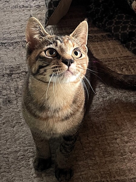 | 特徴(性格など) | 【仮名】なつめ 【年齢】2024年9月11日生れ 【性別】メス 【エイズ・白血病】未 ※母猫が陰性 【性格】野良で保護されたお母さん猫から4匹兄妹で生まれました。たっぷり母乳を貰い、とても元気に成長中。とてもお利口さんで、遊んで欲しいとお気に入りのおもちゃを犬みたいに口にくわえて持ってきます(笑)。姉弟の中では大人しめの子でしたが、成長につれ活発に遊びだしておてんば娘になりました。物怖じしない強気な子で、子猫らしく好奇心旺盛でおもちゃが大好きです。そばに行くとゴロゴロ喉を鳴らしてコロンと転がってお腹を出します(笑)新しい環境にもすぐ慣れる子だと思います。なつめ以外の兄妹猫は全員に里親様が決まって居なくなり、今は母猫のえひめと2匹だけになりました。大切にしてくれる方との出会いを待っています。 【母猫】えひめ |