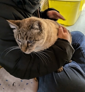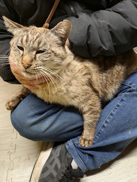 | 特徴(性格など) | シャムmix、年齢は不詳です。 オケリ君は、元飼い主さんが命名されていました。 茶色系のシャムmixです。 おとなしい性格なので、抱っこ中に爪切りも出来ます。 猫はあまり好きではないようで、出来るなら1匹飼いでお願いしたいです。 |