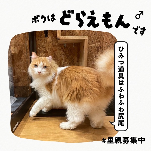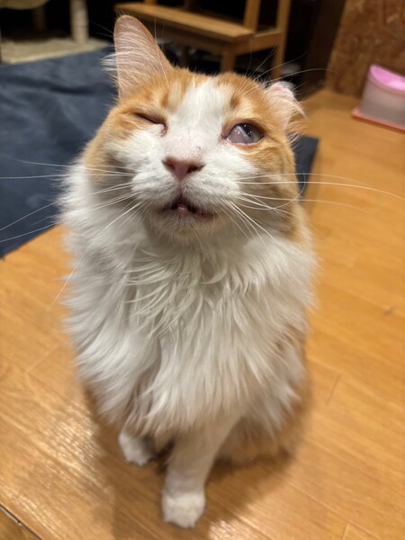 | 特徴(性格など) | はじめての場所でもまったく物怖じしないとってもマイペースな男の子。 ふわふわの毛並みがたまりません。 顔半分に麻痺がありますが、ご飯を食べこぼすくらいで 普段の生活には影響ありません。 人、猫OK。詳しくはインスタをチェック!@nyans_chiyo_shelter |