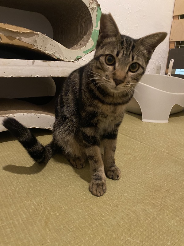 | 特徴(性格など) | キジ(マーブルタビー柄) 運動神経は抜群。 先住猫さんとも仲良くできます。 |