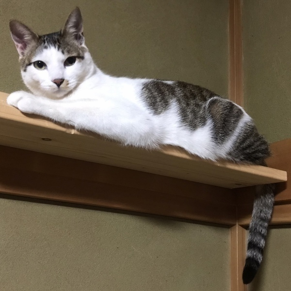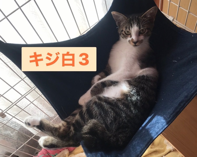 | 特徴(性格など) | キジ白2オス 細身で尻尾がとても長い 気に入ったおもちゃを持ち歩く 高い所でごはんを食べたい 野菜と果物を食べる 甘えて鳴きながら頭ゴチンゴチンしてくる 話しかけなくても返事をする 慣れない場所ではとても緊張してしまう キジ白3オス ぐるっと回転した鍵尻尾 人馴れはほぼ大丈夫だが用が無い時は逃げる 食べ終わったら逃げる 人がくつろいでいる時やご飯が欲しい時は寄ってきて可愛く鳴き撫でると尻尾ピンでゴロゴロ甘えん坊 話しかけると返事をする 爪切りできます。歯磨き練習しています。 トイレは固まるタイプとシステムタイプの両方を使っています。 おもちゃ大好きでケージから出すとずっと走り回って元気に遊んでいます。 走ったりにゃんプロしたり忙しいです。 キャットタワーやキャットウォーク等高い場所が好きです。 ハンモックも好きです。 ドライフードを食べています。 画像最後2枚は5ヶ月頃です。 |