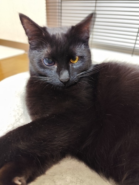 | 里親募集する理由 | 野良猫に理解が得られない住宅地で出産、子育てをしてました 移動先の住人に協力をしてもらい捕獲器で保護しました ママ猫はTNRの予定でしたが、リリースしてもお世話してくれる人が見つからず親子7匹一緒に我が家に引っ越し 人には警戒心マックスでしたが、手術後も甲斐甲斐しく子育てをするほど愛情深いママです 外でまともにごはんを食べられなかったせいか、離乳食も平らげてしまうので、少しずつ子離れさせましたが、我が家の猫たちにも過剰なアピールをするくらい猫好きです(オス猫のみ) 子猫たちはそれぞれ里親様の元へ嫁ぎ、末の黒猫だけ右目の状態を専門の眼科医に検査してもらうことになりました。 水晶体剥離、網膜剥離、緑内障と診断され、今後は眼圧があがり眼球摘出と言われましたが、成長度合いのわりに進行が緩やかなため ハンデキャップはあるけど性格がとても愛らしいので里親募集をすることにしました。 ママ猫はまだ人馴れ修行中ですが、保護当初より穏やかになり、顔まわりと指先だけ触れるようになりました。 オヤツも人の手から食べます たまに催促する時にかわいらしい声で鳴きます ママ猫のペースで付き合ってくださるご家族様がいたらお迎えしていただけると嬉しいです。 |