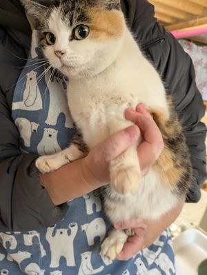 | 特徴(性格など) | ミケ猫、エイズ・白血病陰性。検便陰性。 とっても人馴れしていて、誰にでも懐きます。 抱っこも大好きで、誰にでも抱っこさせます。 |